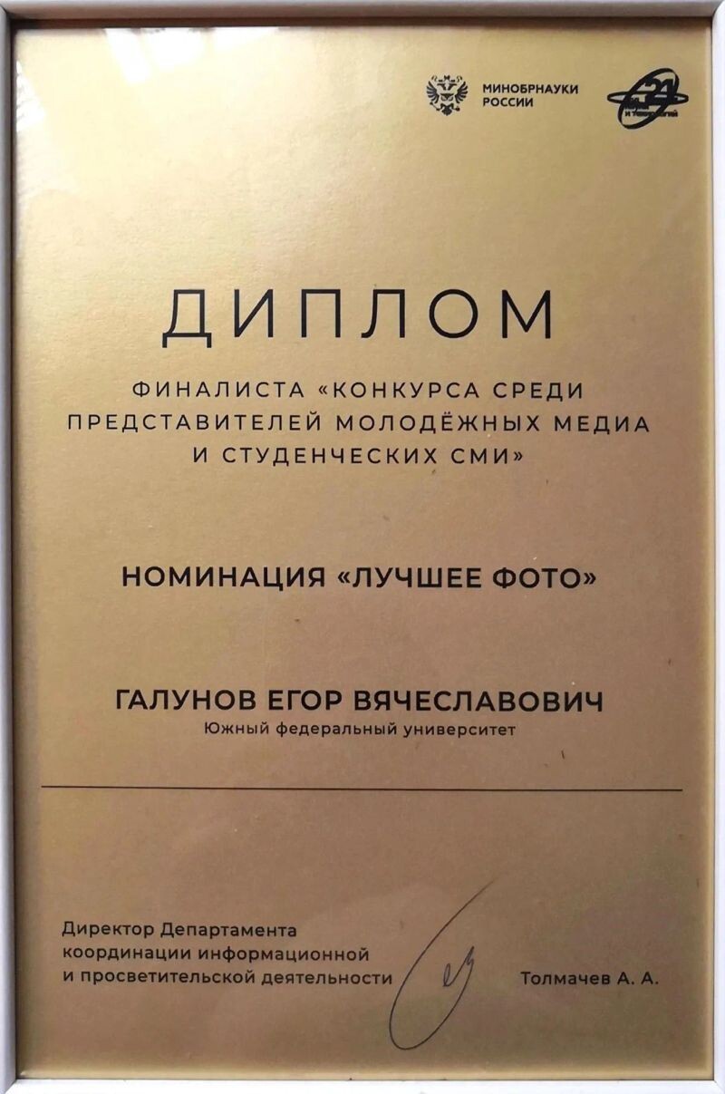- Всероссийский конкурс среди представителей студенческих СМИ в номинации «Лучшее фото», финалист, 2021 г.