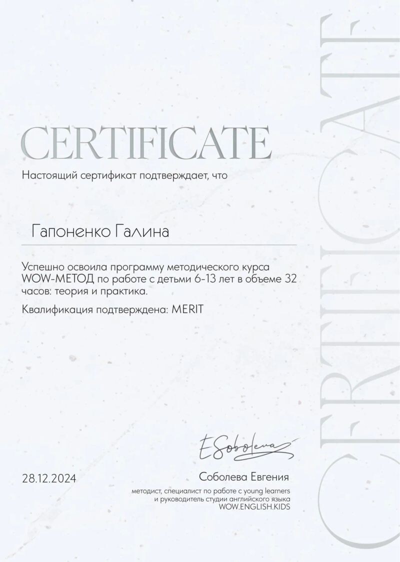 - WOW.ENGLISH.KIDS, методический курс WOW-МЕТОД по работе с детьми 6-13 лет, 2024 г.