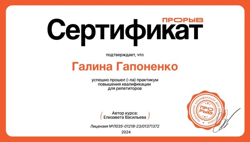 - Прорыв, практикум повышения квалификации для репетиторов, 2024 г.