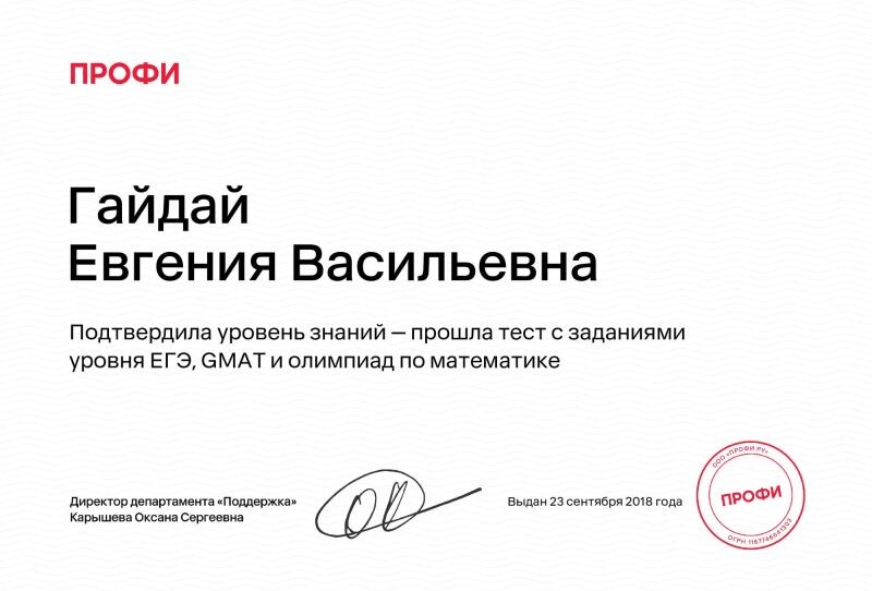 - Подтвердила уровень знаний — Прошла тест с заданиями уровня ЕГЭ, GMAT и олимпиад по математике (с 2018 г.).