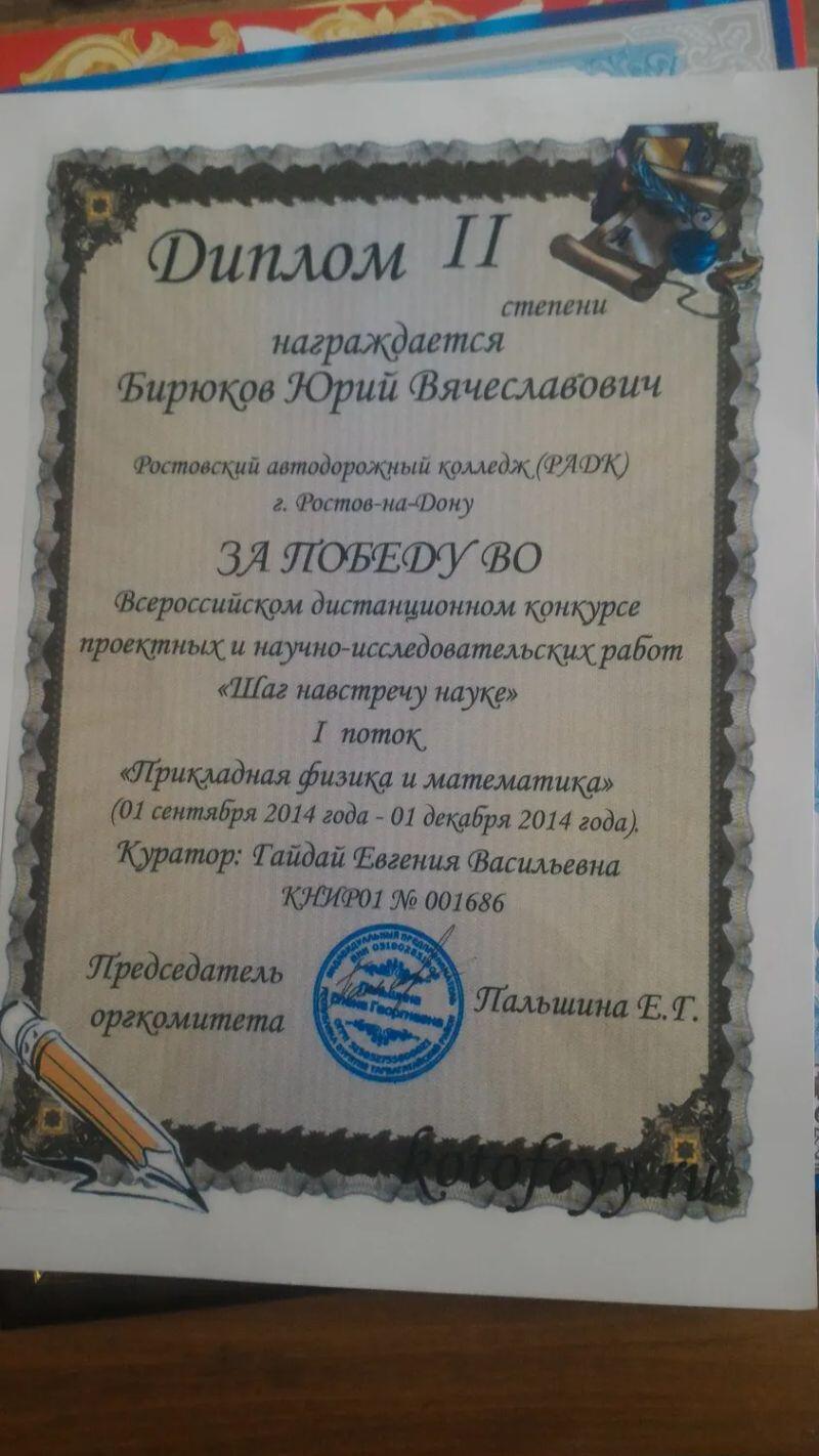 - Ростовский-на-Дону государственный педагогический институт, специальность – преподаватель математики, 1974 г.