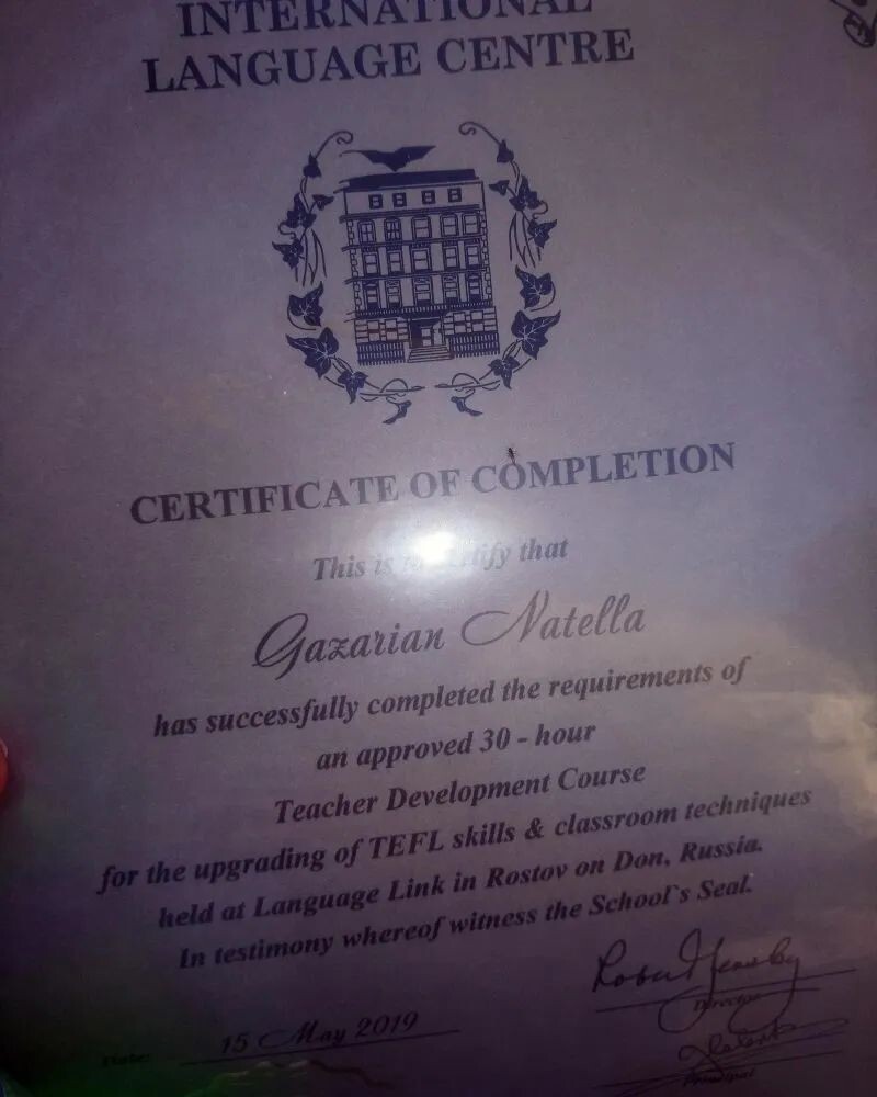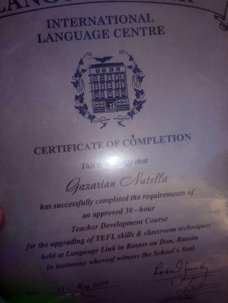 - Международная языковая школа Language Linkкурс, курс повышения квалификации по методике преподавания английского языка, 2018–2019 гг.