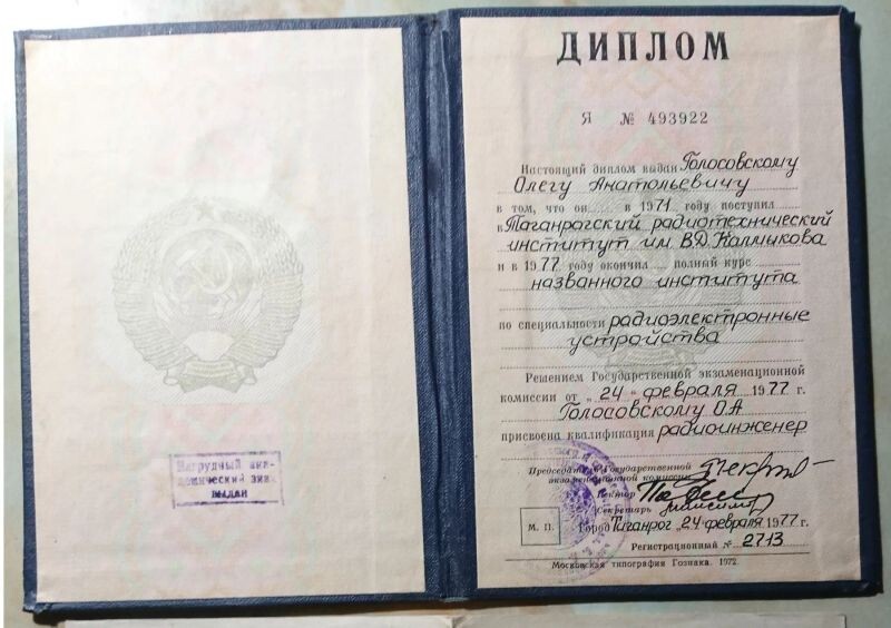 - Кандидат технических наук, специальность "Оптические системы локации, связи и обработки информации", 1984–1987 гг.