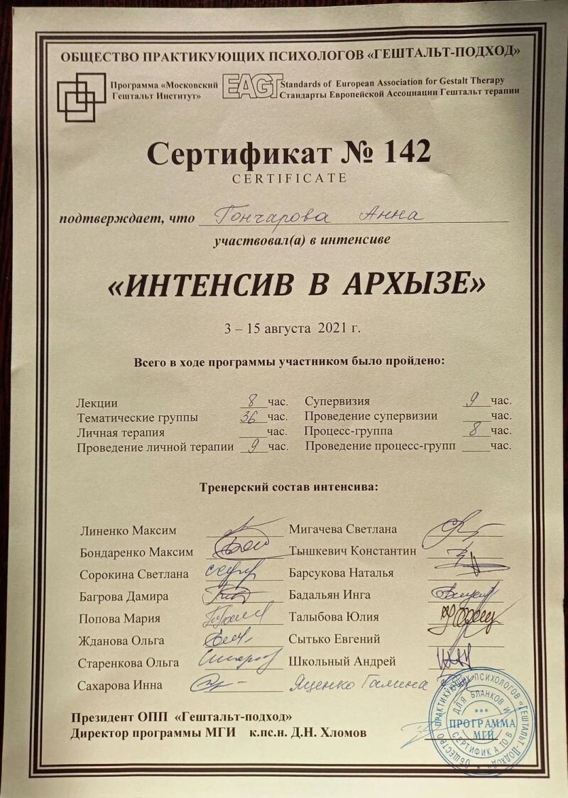 - Московский Гештальт Институт, интенсив в Архызе, 2021 г.