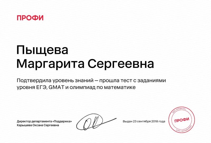 - Подтвердила уровень знаний — Прошла тест с заданиями уровня ЕГЭ, GMAT и олимпиад по математике (с 2018 г.).