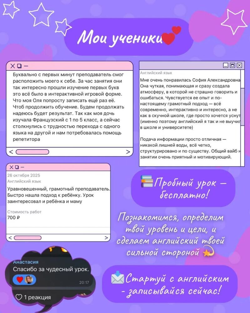 - Английский язык от 1200 ₽ за час