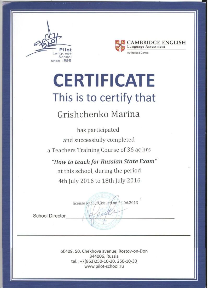 - Прохождение курса по подготовке к ОГЭ и ЕГЭ (с 2016 г.).
