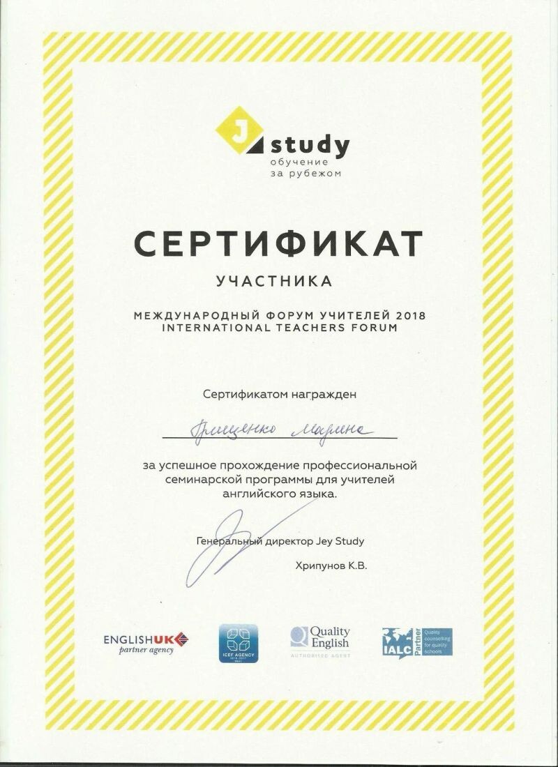 - Участие в международном форуме учителей (с 2018 г.).