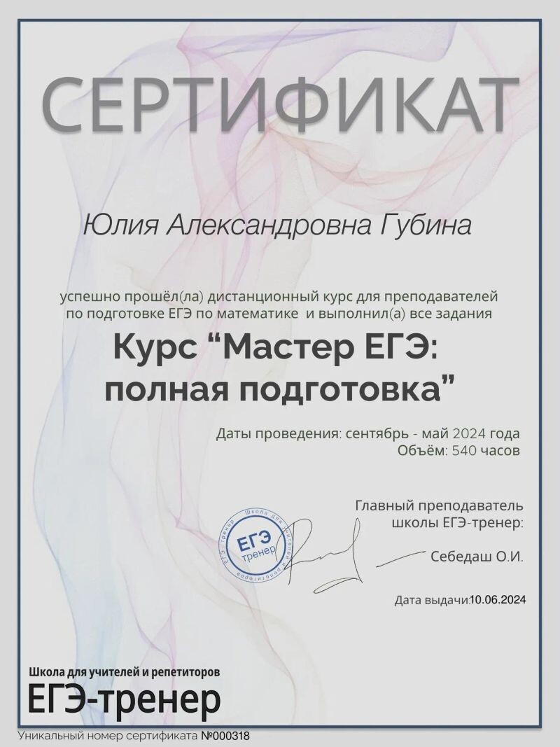 - Ежегодно прохожу курсы повышения квалификации, чтобы знать все тонкости оформления и проверки работ на ЕГЭ от экспертов (с 2024 г.).