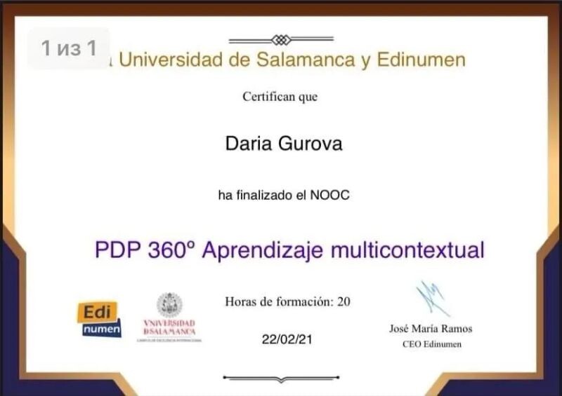 - Universidad de Salamanca y Edinumen, методический курс — PDP 360° Aprendizaje multicontextual, 2021 г.