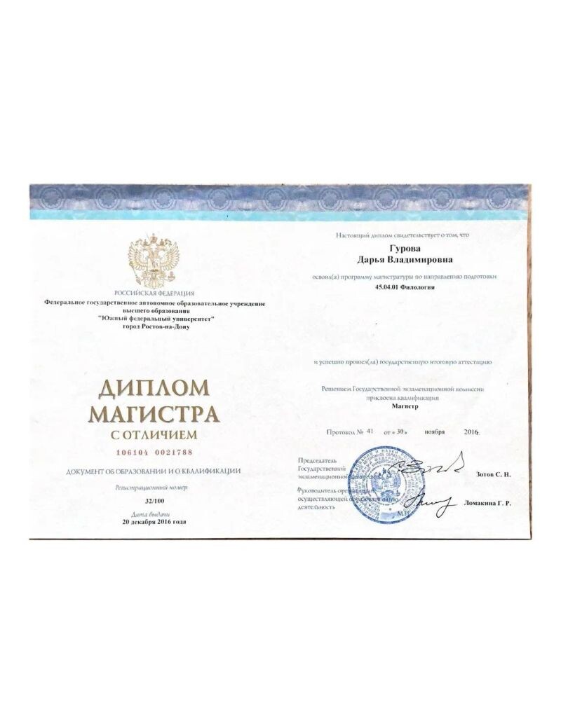 - ЮФУ, филология, магистратура, 2014–2016 гг.