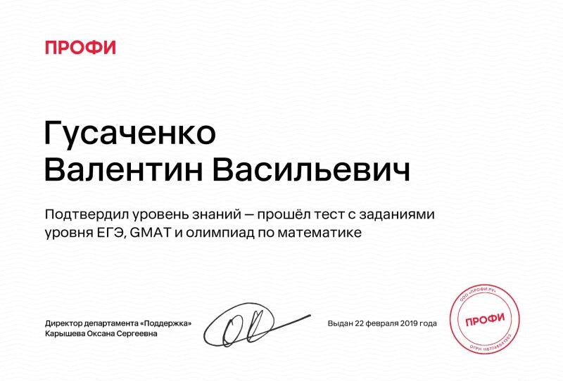 - Подтвердил уровень знаний — Прошёл тест с заданиями уровня ЕГЭ, GMAT и олимпиад по математике (с 2019 г.).