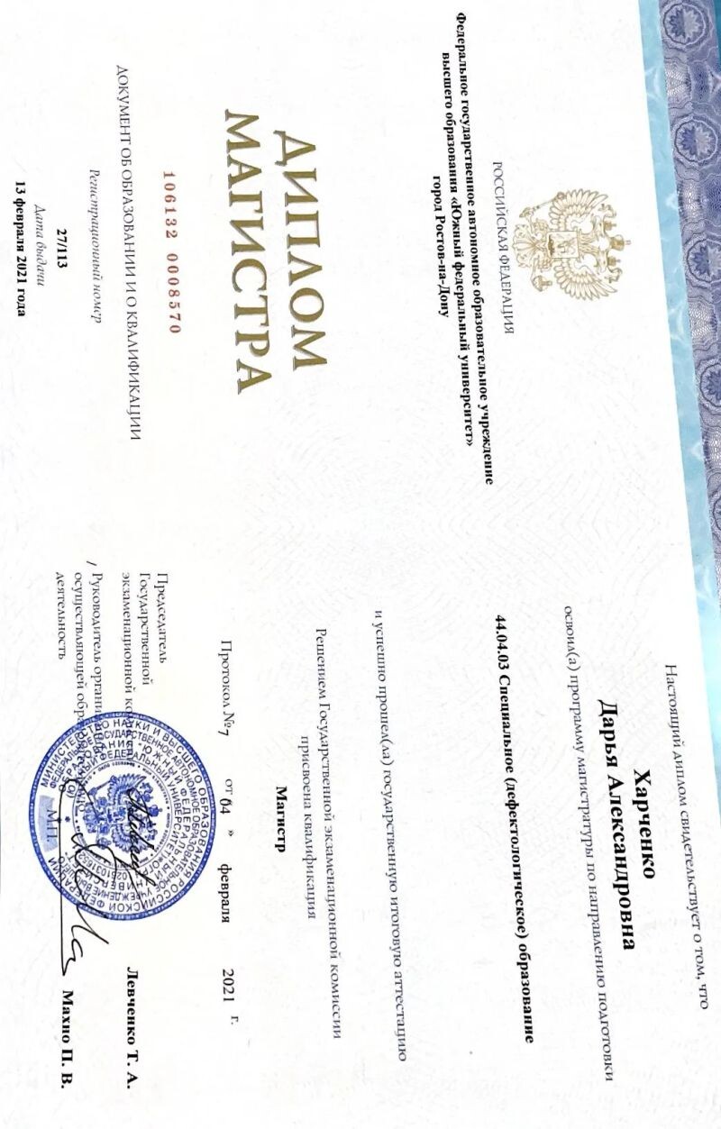 - ЮФУ, специальное (дефектологическое) образование, магистратура, 2021 г.