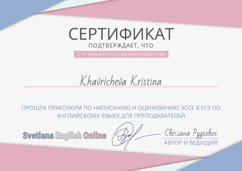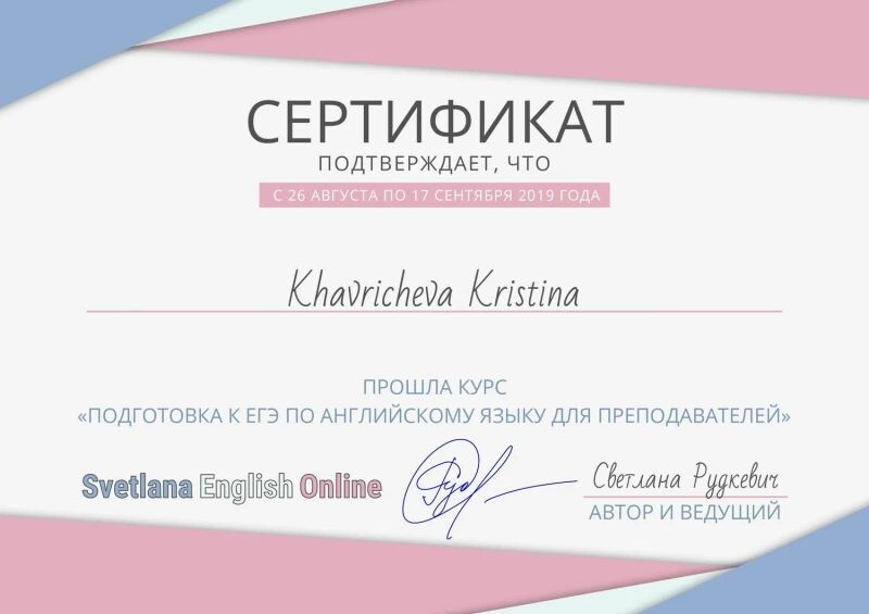 - Светлана Рудкевич, подготовка к ЕГЭ по английскому языку для преподавателей, 2019 г.