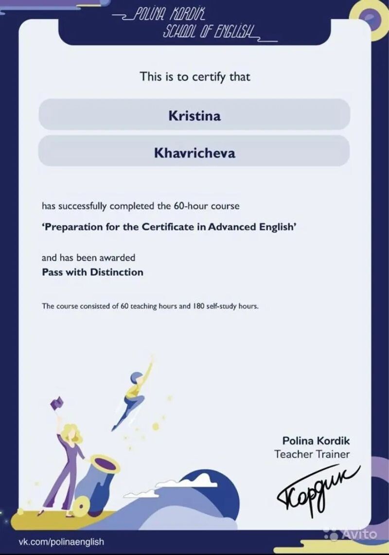 - Курс подготовки к экзамену CAE в школе английского языка Полины Кордик, 2020–2021 гг.