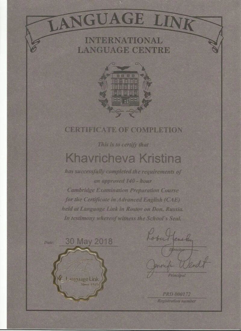 - Cambridge preparation Course for the Certificate in Advanced English CAE, курсы подготовки к экзамену CAE (продвинутый уровень владения английским языком), 2018 г.
