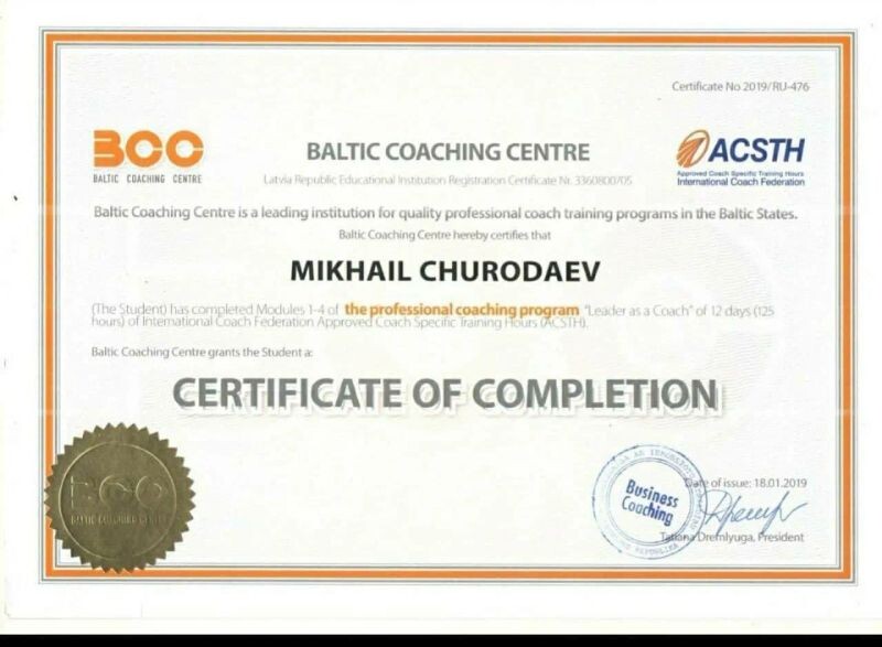 - Балтийский центр коучинга, программы профессионального коучинга, 2019 г.