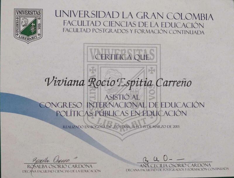- Universidad La Gran Colombia, congreso internacional en educación, políticas públicas en Educación, 2013 г.