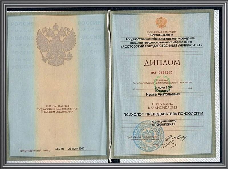 - РГУ, психолог, преподаватель психологии, 2001–2006 гг.