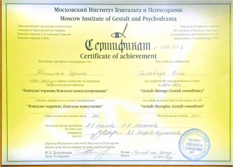 - МИГиП, гештальт-терапия, 2004–2008 гг.