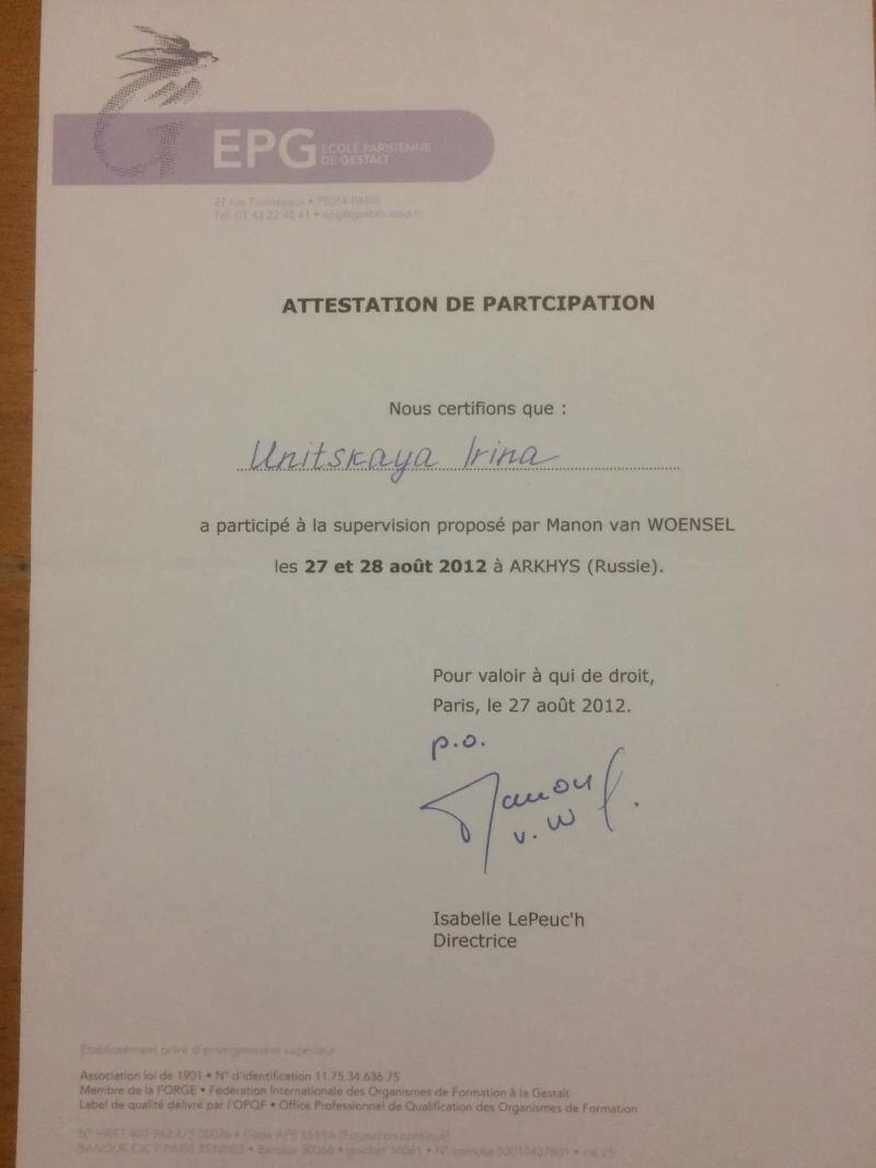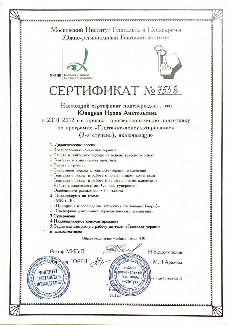 - МИГиП, гештальт-консультирование, 2010–2012 гг.