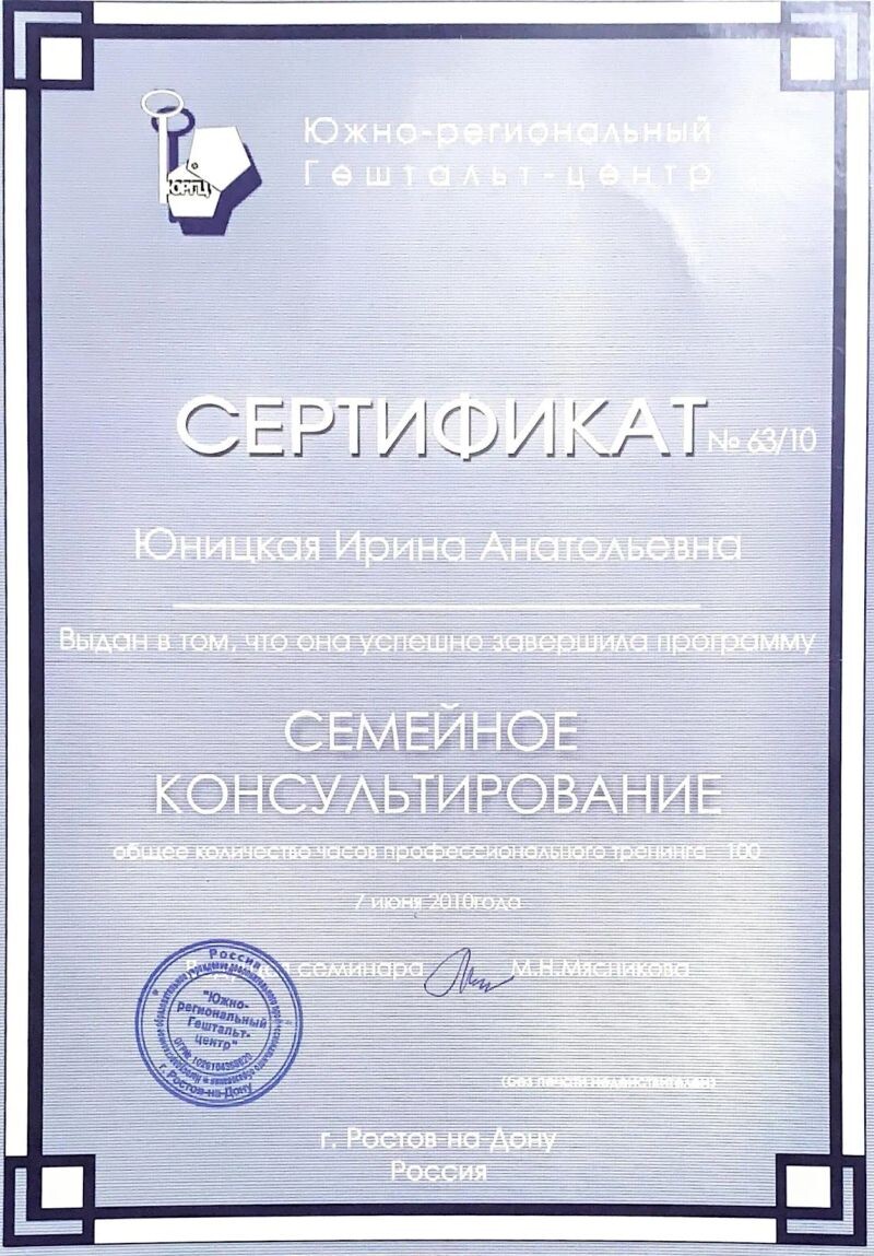 - ЮРГИ, семейное консультирование, 2009–2010 гг.