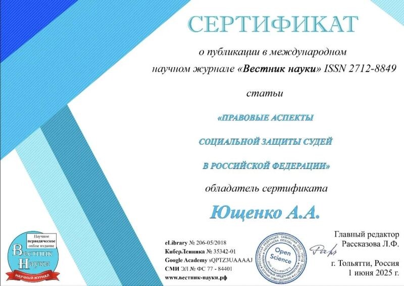 - Публикация в международном научном журнале «Вестник науки», 2025 г.