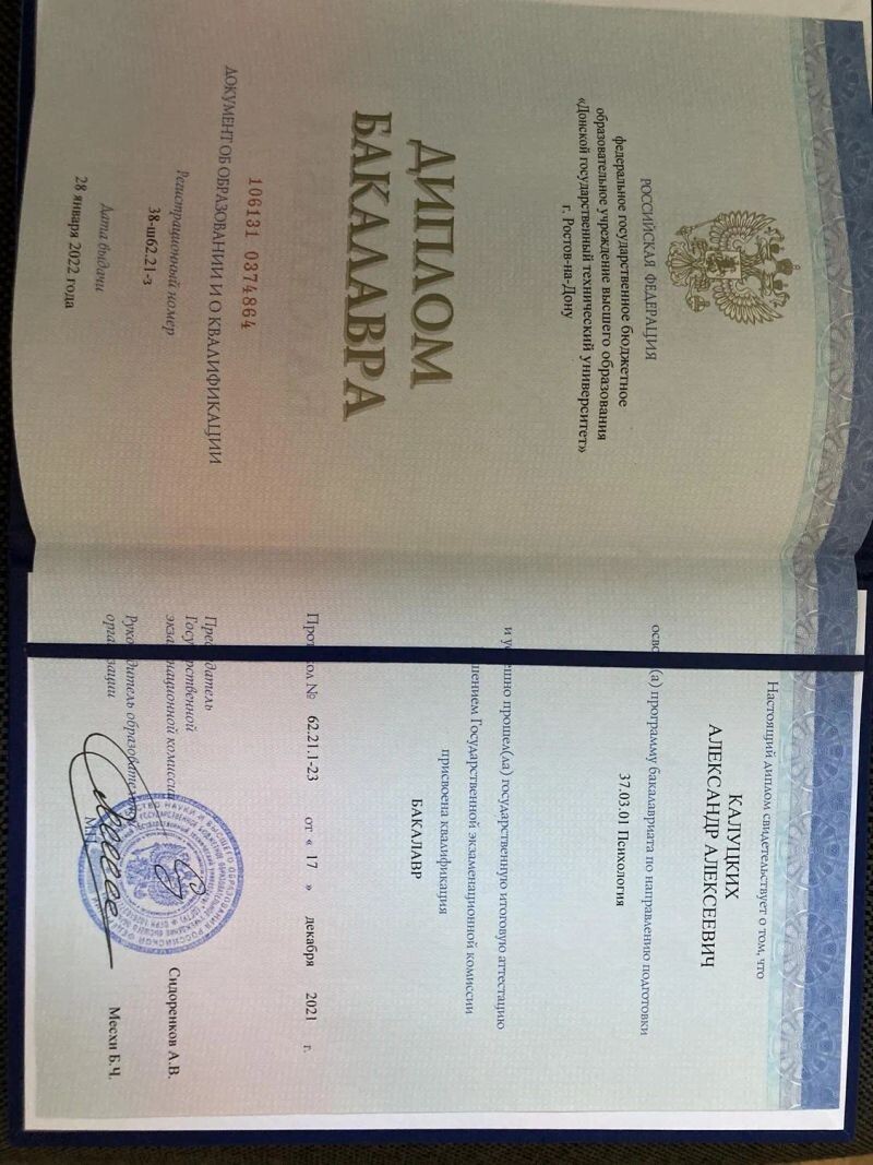- ДГТУ, психология, бакалавр, 2018–2022 гг.