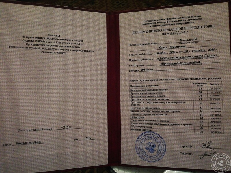- Учебно-методичечкий центр «Темпус», курс «Практическая психология», 2016 г.