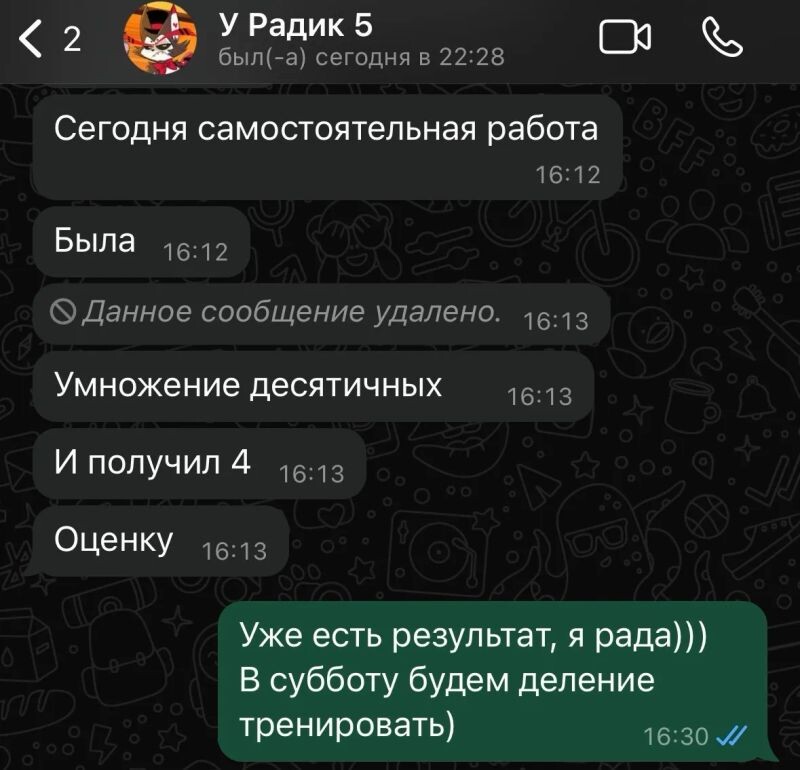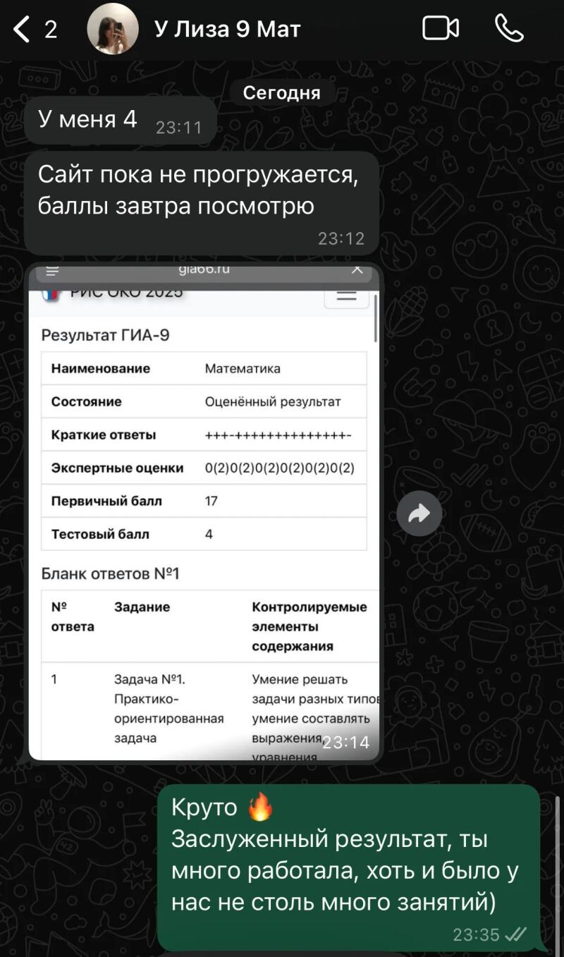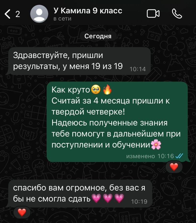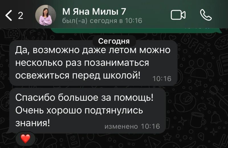 Занятиями с Ириной очень довольны, хотя бы в последней четверти с 3 вышли на твердую 4. Сыну нравится, что объясняют доступным языком, даже итоговую работу написал на 4