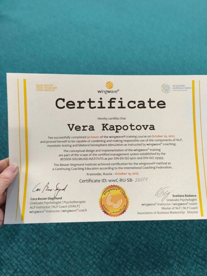 - Академия нейрокоучинга Светланы Бадаевой (с 2025 г.).
