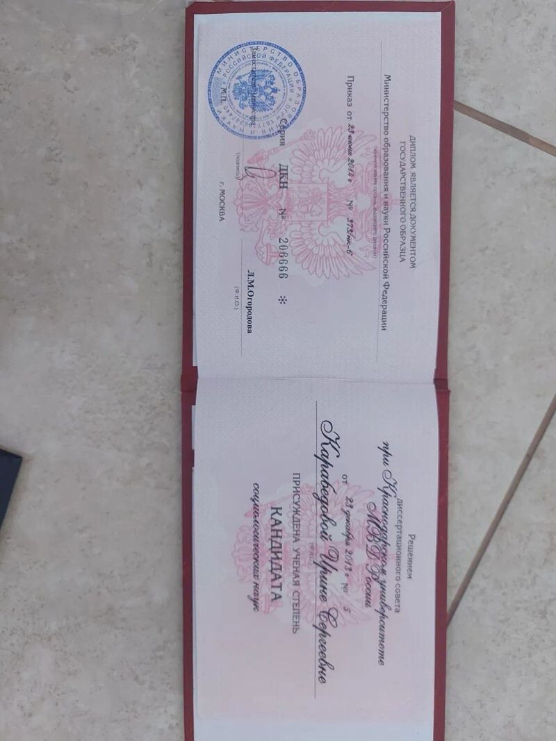 - Степень кандидата социологических наук, 2009–2013 гг.