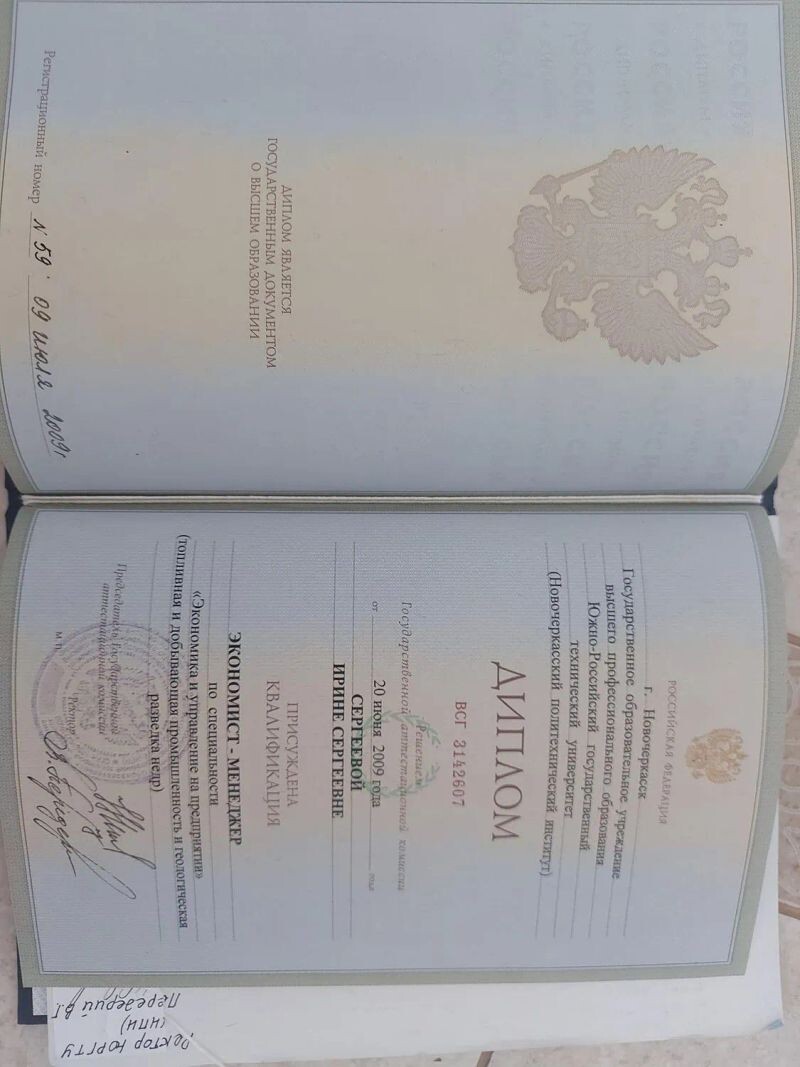 - Южно-Российский государственный технический университет, факультет государственного и социально-экономического образования, квалификация – экономист-менеджер, 2004–2009 гг.
