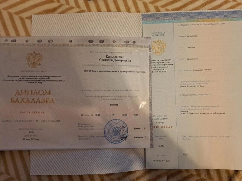 - Ростовский государственный экономический университет, специальность «учитель физики и математики», 2013–2018 гг.