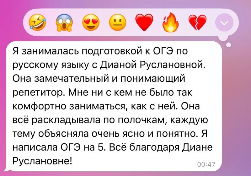 ► Связаться с Каттаевой Дианой Руслановной можно за пару минут. Нажмите на кнопку «Связаться с репетитором» и заполните короткую форму.