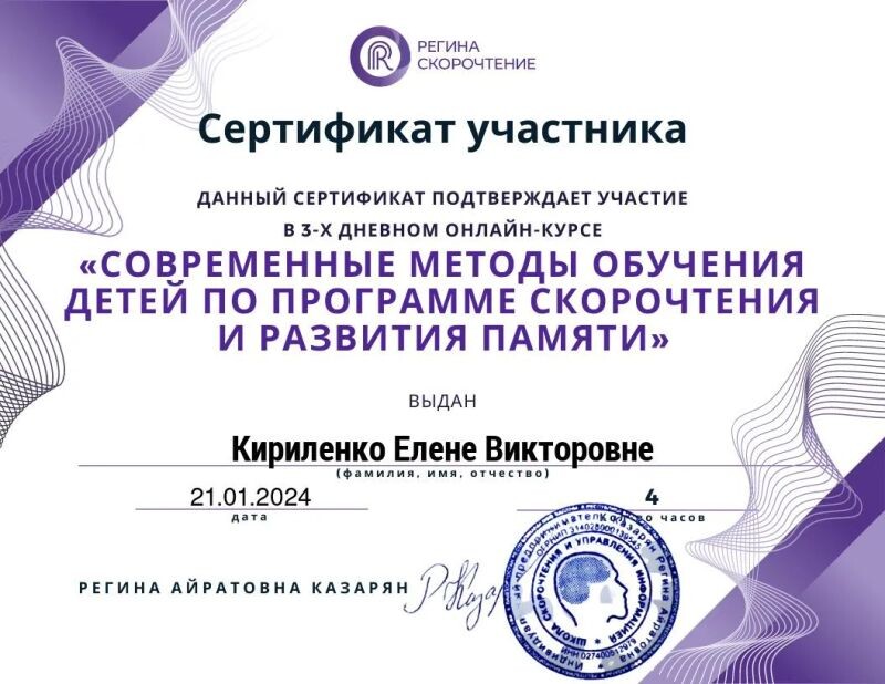 - Школа скорочтения и управления информацией, современные методы обучения детей по программе скорочтения и развития памяти, 2024 г.