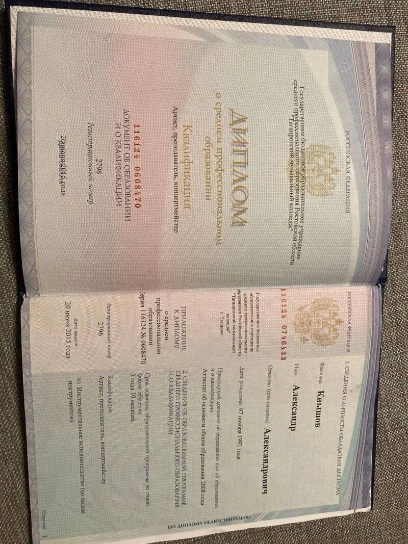 - Таганрогский музыкальный колледж, специальность – фортепиано, 2011–2015 гг.