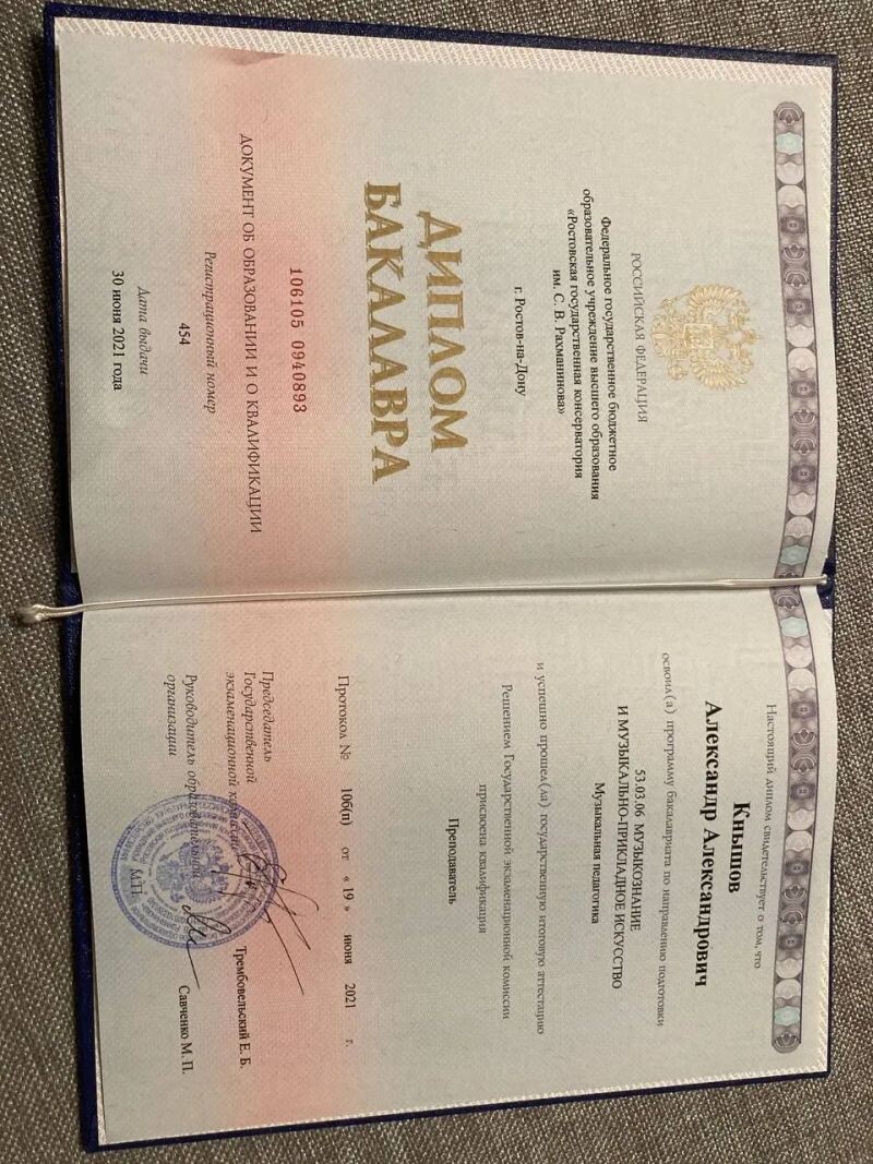 - Ростовская государственная консерватория им С.В. Рахманинова, кафедра истории музыки, отделение музыкальной педагогики, 2015–2021 гг.