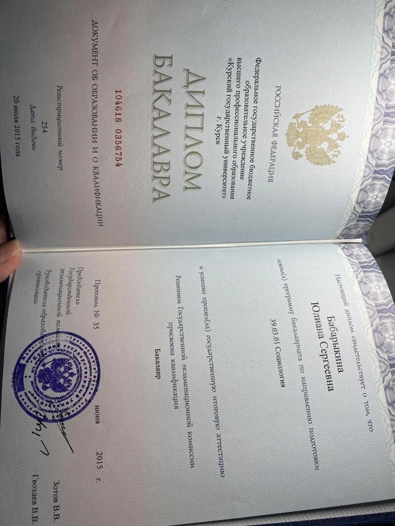 - Курский государственный университет, факультет философии, социологии и культурологии, бакалавр социологии, 2011–2015 гг.