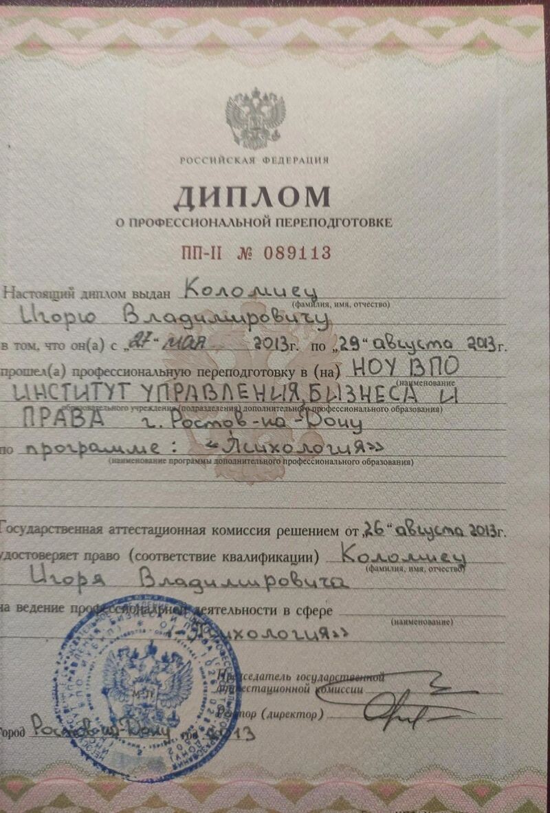- Институт управления, бизнеса и права, психология, 2013 г.