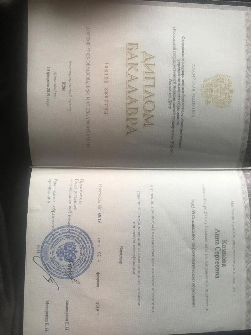 - Ростовский государственный экономический университет, специальность – логопедия, 2014–2019 гг.