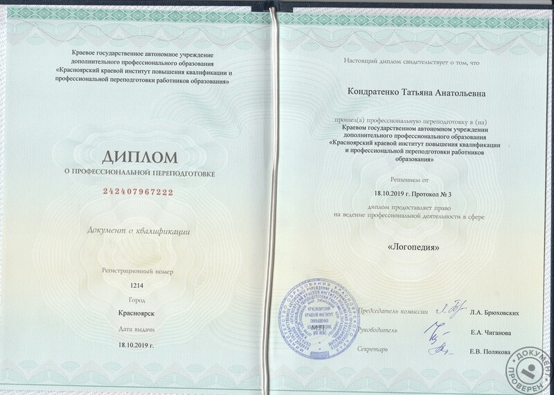 - КГАУ ДПО «Красноярский краевой институт повышения квалификации и переподготовки работников образования», 2019 г.