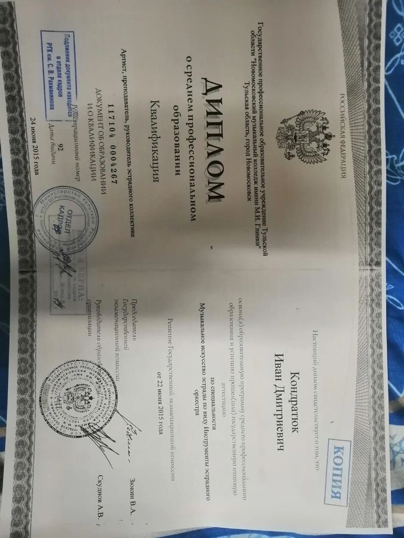 - ГПОУ ТО Новомосковский музыкальный колледж им. М.И. Глинки, 2011–2015 гг.