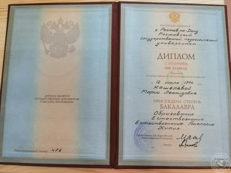 - РГПИ, факультет естествознания, учитель биологии, 1997 г.