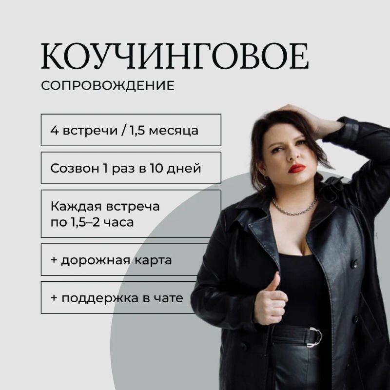Для тех, кто хочет идти к цели или целям длительно, то есть несколько вариантов пакетов сопровождения. ... - Женский коучинг от 8000 ₽ за часНа коуч-сессии разбираем только один запрос. Одна сессия = один запрос.