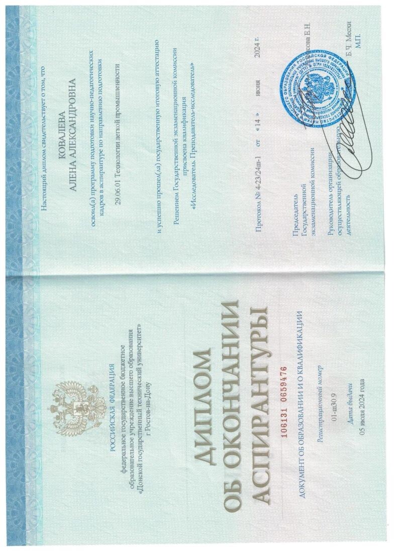 - Преподаватель-исследователь, Технологии легкой промышленности, 2017–2024 гг.