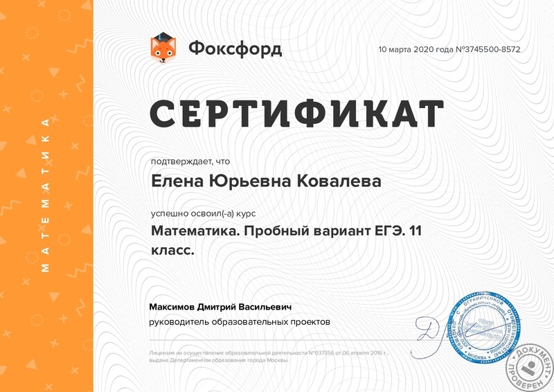 - ООО «Фоксфорд», курс «Математика. Пробный вариант ЕГЭ. 11 класс.», 2020 г.