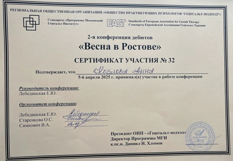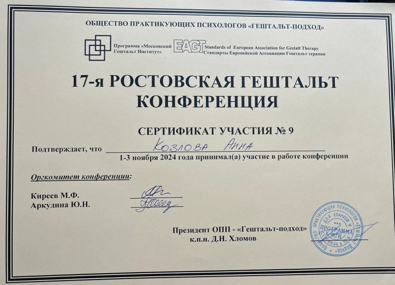 ► Связаться с Козловой Анной Андреевной можно за пару минут. Нажмите на кнопку «Связаться со специалистом» и заполните короткую форму.
