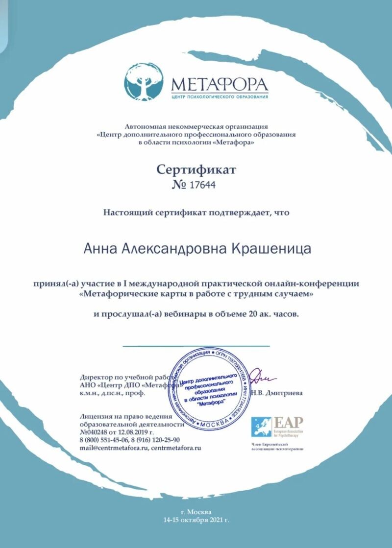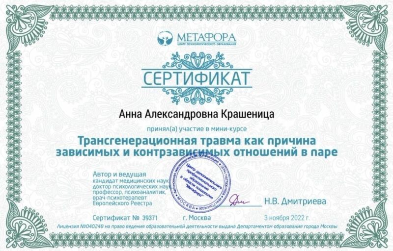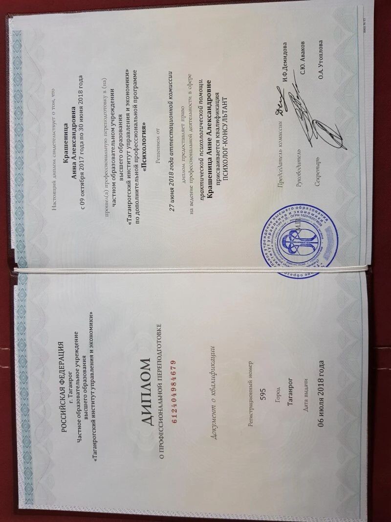 ► Крашеница Анна Александровна принимает территориально: Таганрог, а также проводит онлайн-консультации.