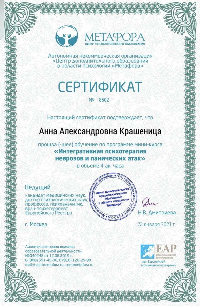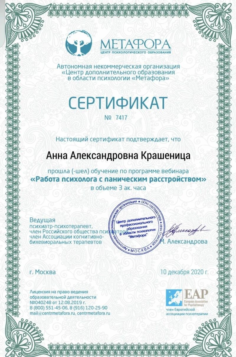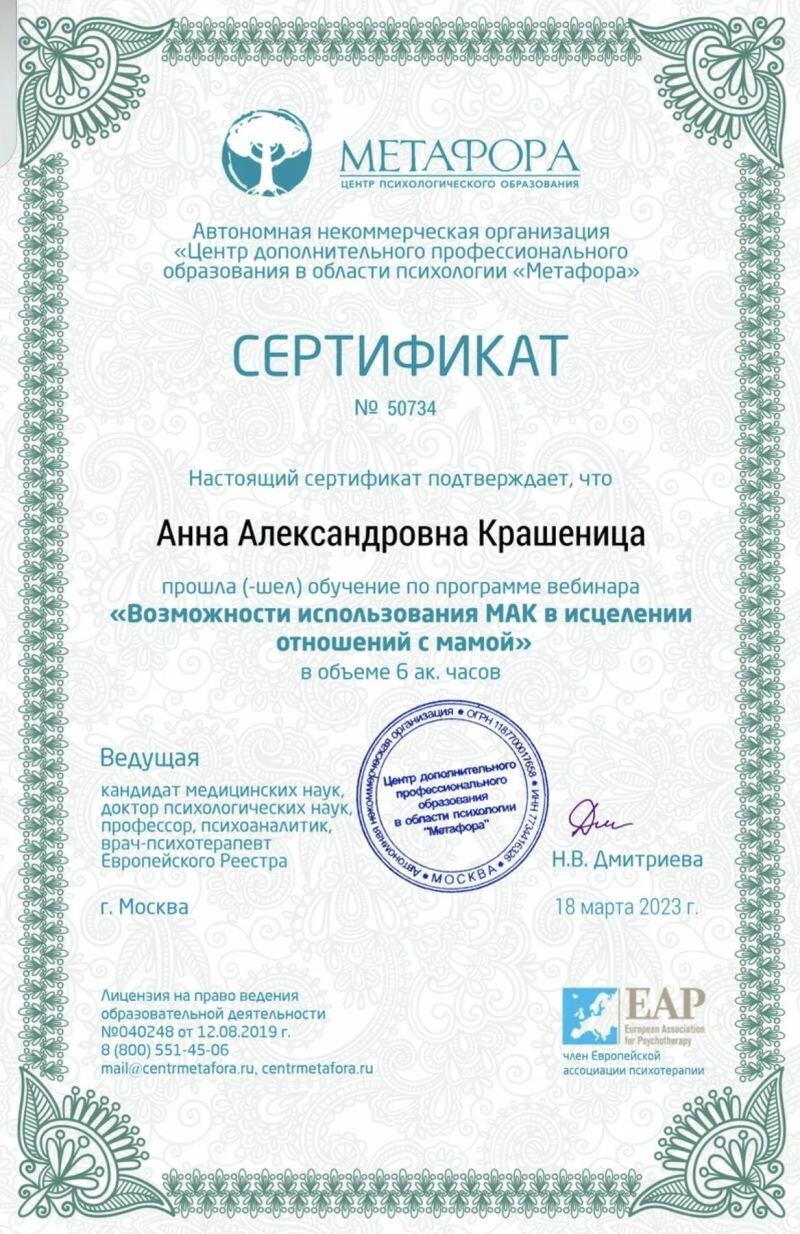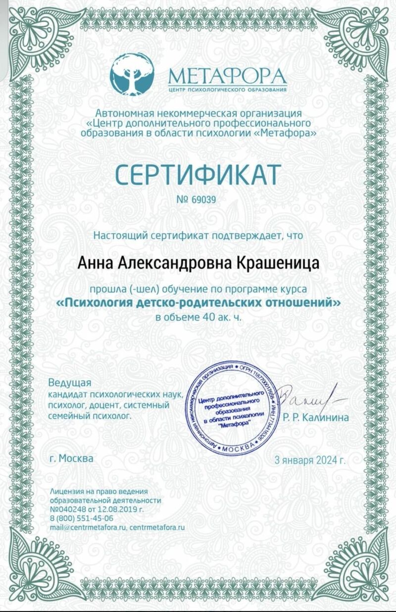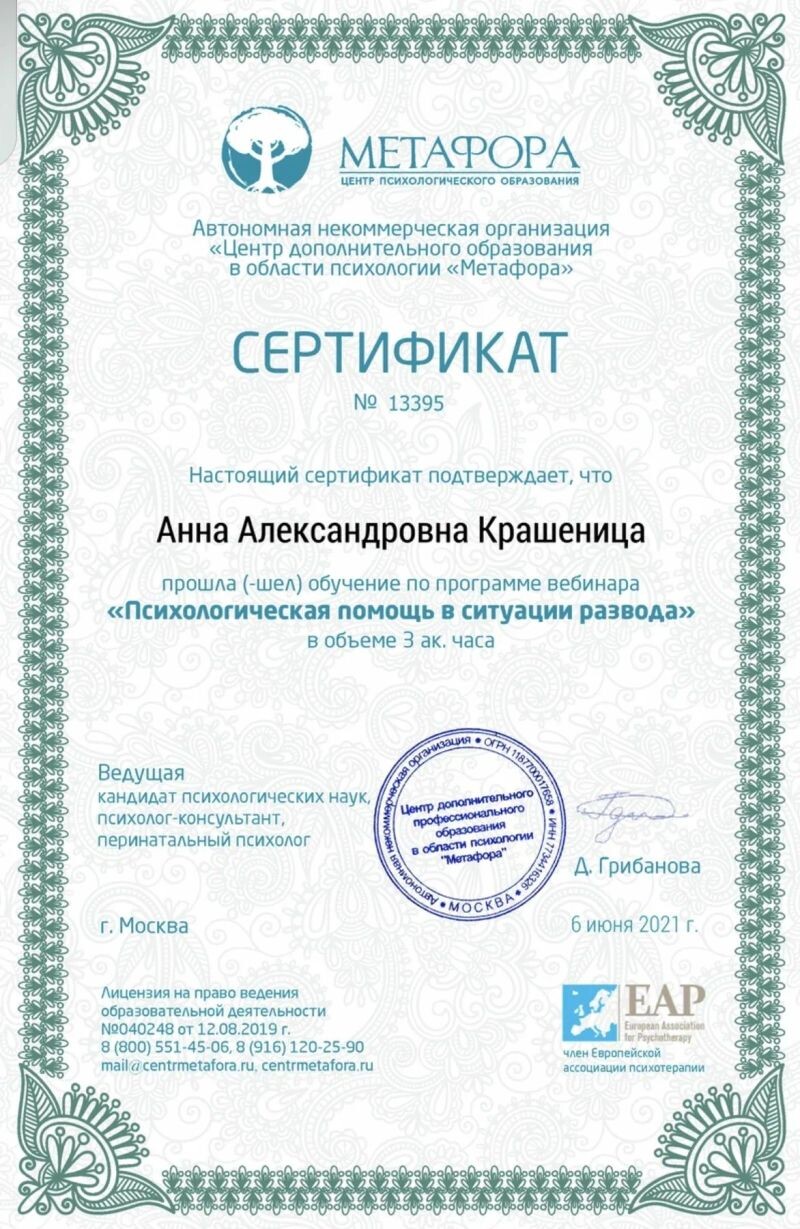 ► Связаться с Крашеницой Анной Александровной можно за пару минут. Нажмите на кнопку «Связаться со специалистом» и заполните короткую форму.